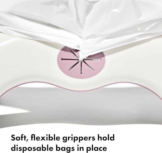 - Flexible flaps hold disposable bags in place, can accommodate standard plastic bags