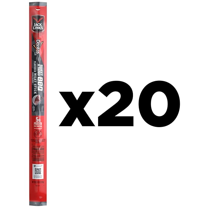 - Includes 20 (0.92 oz) Frito Lay Jack Link's Meat Sticks, Sweet & Tangy BBQ flavor