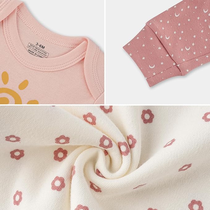 - Versatile Designs: Featuring a variety of colors and patterns, the different design styles in this set make it easy to mix and match outfits for your baby, adding fun and flair to their wardrobe.