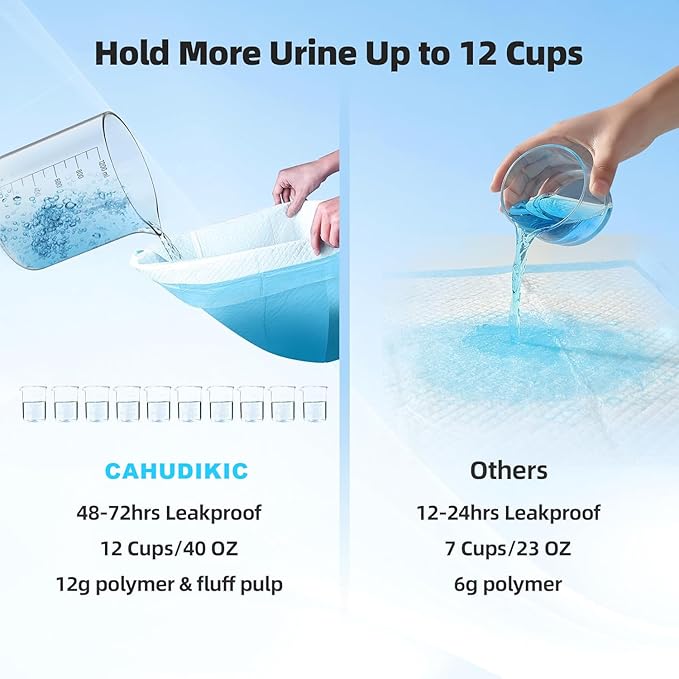 - Cost Effective & Skin Friendly: The whelping pads provide a comfortable touch for human and pets, perfect for all-night protection without irritation, increased to 12g super absorbent polymer and fluff pulp hold more liquid up to 12 cups(1200ml), one pad lasts a long time, very cost effective