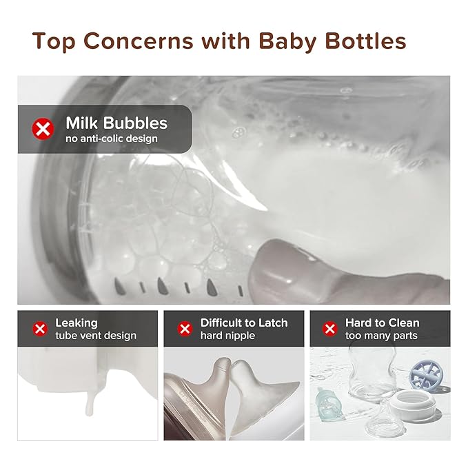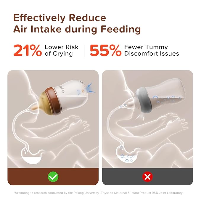- Anti-Colic Base Vent Design: Innovative patented base vent separates air from liquid, ensuring smooth milk flow without air intake, reducing colic, reflux, and gas.