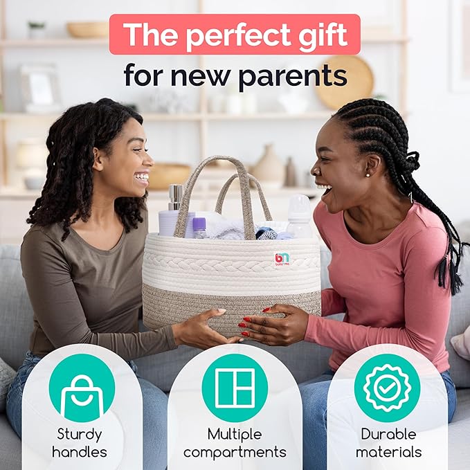 Rope Diaper Caddy - Storage for Baby and Toddler Items - Portable Cotton Organizer Easily Holds Diapers, Wipes, Clothing - Useful for Nursery, Bedroom (Beige, Extra Large)
