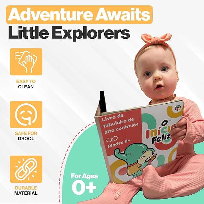 Happy Start Award-Winning High Contrast Board Book - Newborn Black & White Baby Cards, Easy to Clean, Hospital Approved, Stands on Its Own, Tummy Time Toy, Ages 0+ (Portuguese)