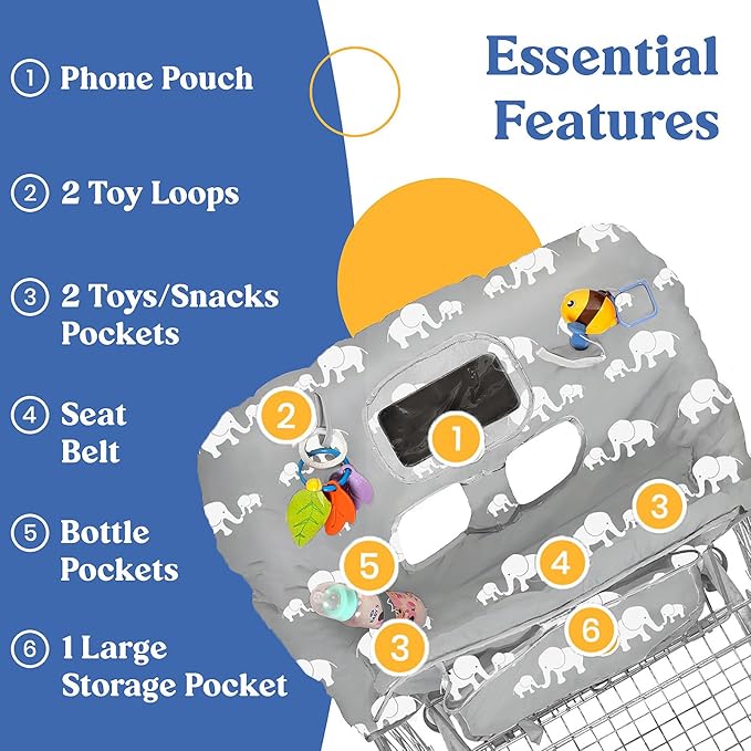 • 🛒Perfect Hygienic 100% COTTON Cover for Your Baby: Make your shopping spree with your child easy & worry-free! Our versatile seat cover helps you save time in wiping & have more time for shopping. It provides a 360-degree protection to keep your toddler's hands, body and mouth from touching that dirty cart and the same goes for you. An absolute way of keeping baby items clean! Our shopping cart cover for baby makes it an ideal part of your baby items list!