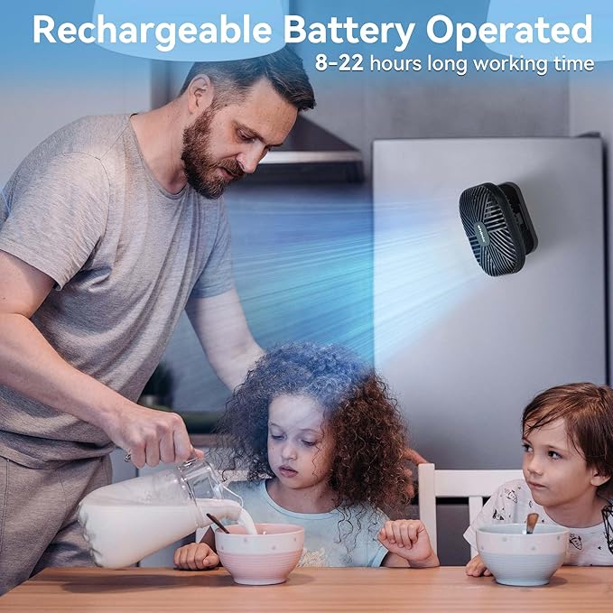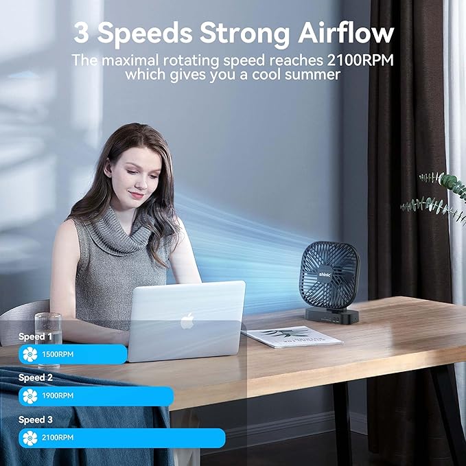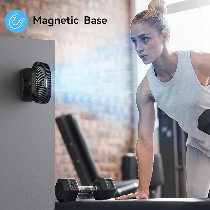 - 【Magnetic Base】The magnetic base of this desk fan allows for easy attachment to metal surfaces. Place it on your desk, fridge, or any magnetic spot, ensuring stability and convenient placement.