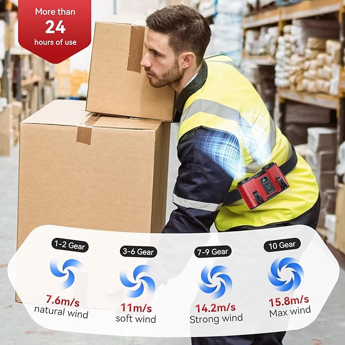 24000mAh Personal Waist Fan, USB Rechargeable Clip The Waist For Working,10 Speed & 40H Cooling and Heatstroke Prevention For Outdoor Travel Camping (Red, 24000mAh)