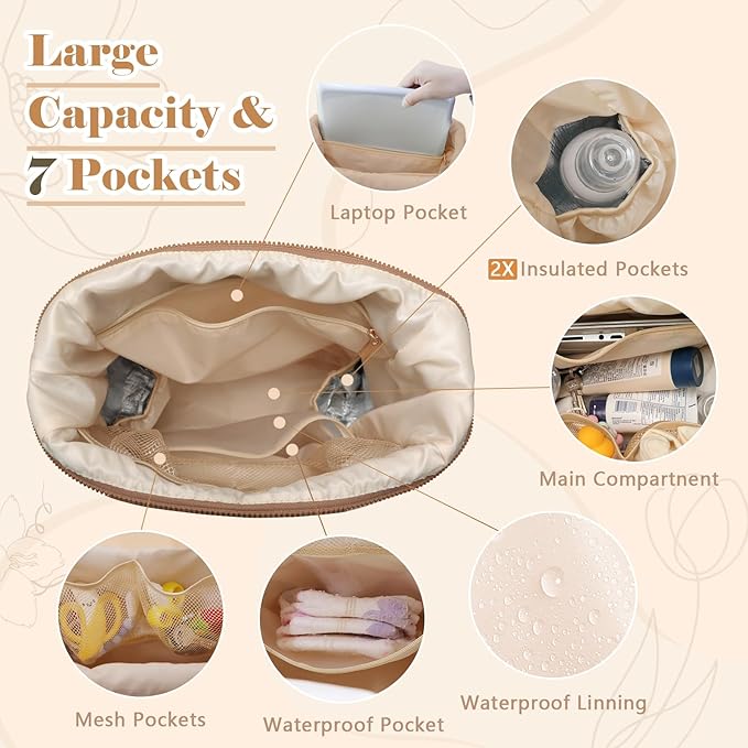 - 【Large Capacity Diaper Backpack】:Featuring with 12 pockets,can hold the baby essentials for 2 kids.5 outer pockets - 2 side pockets for tissue /diaper.2x insulated pockets for baby bottle.1x mesh pocket for baby clothes,7 inner pockets-1 zipper pocket for laptop,1 large main compartment for baby clothes &snacks,2x insulated pockets for baby bottles.2x mesh pockets,1x waterproof pocket for wet clothes. Multi-functional baby bag can storage space for baby essentials,keeping everything organized.