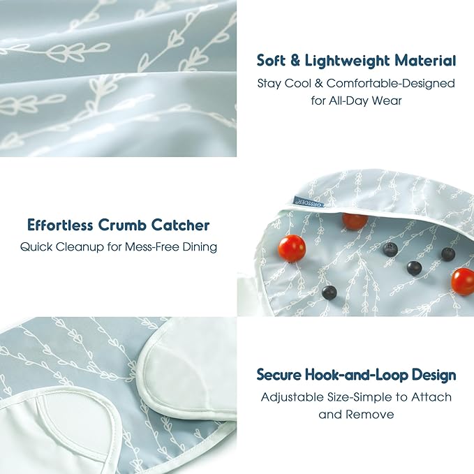 - ECO-FRIENDLY AND SAFE: GRSSDER mess free toddler bibs prioritize your baby's health and the environment, made from hypoallergenic materials. Free from harmful chemicals and dyes, our BPA free baby feeding bib sets are safe for your baby's sensitive skin, offering both peace of mind and a sustainable choice.