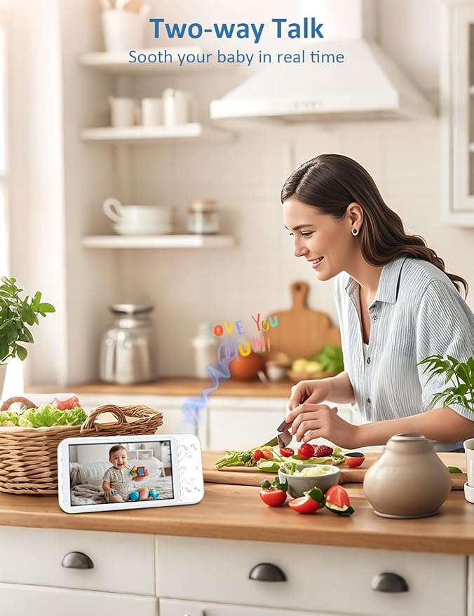 - 【Infrared Night Vision & Two-Way Audio】 Stay connected with your baby around the clock. Our baby monitor features high-quality infrared night vision, allowing you to keep an eye on your little one in low-light conditions. The built-in microphone and speaker enable two-way audio, so you can hear and talk to your baby, providing comfort and reassurance when they need it most.