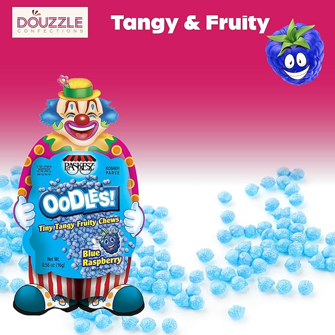 DOUzzle Back To School Oodles Clown Shaped, Blue Raspberry Tiny Tangy Chews (12 Count, 1 Pack) Individually Wrapped, Party Favor, Goodie Bag & Pinata Filler - Kosher Parve