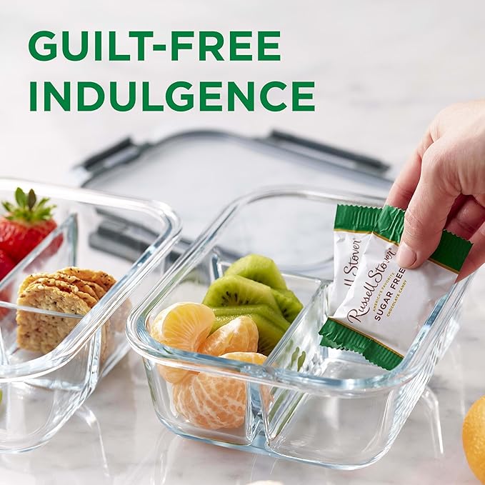 - No sugar, great taste! RUSSELL STOVER Sugar Free Toffee Squares in Chocolate Candy, 2 oz., are made with Stevia extract, a plant-based sweetener that delivers all the sweet taste you crave with no added sugar.