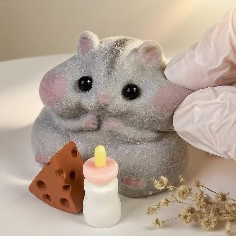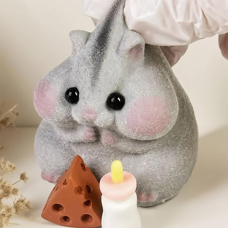 Handmade Taba Squishy Hamster Toy, Cute Squishy Hamster Fidget Toy, Realistic Hamster Toy, Soft Silicone Mochi Furry Toy, Stress Relief Gift for Adults & Kids, Sensory Anxiety Plushie (Gray)