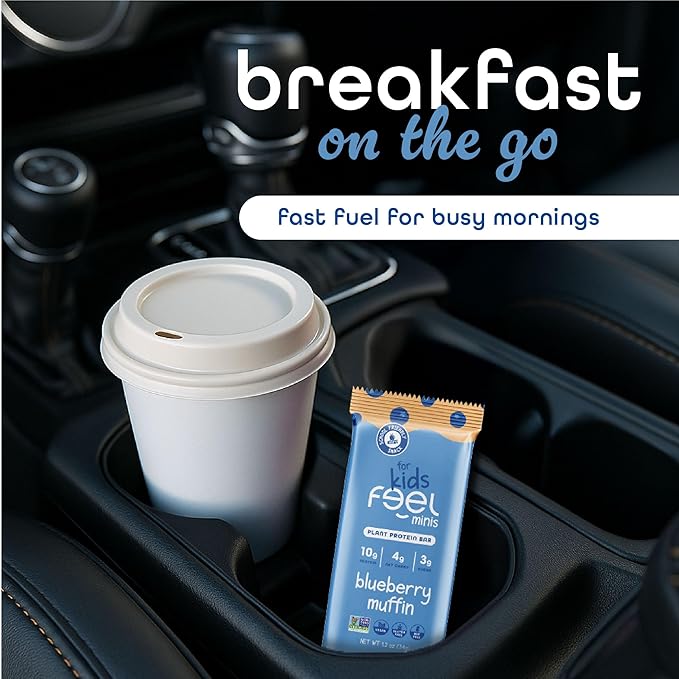 Feel Bar Minis – Kids Protein Bars | Blueberry Muffin | 10g Plant Protein | 100 Calories | No Added Sugar | + Daily Veggies | Gluten Free, No Nuts, No Soy, No Dairy, No Grains (12 Pack)