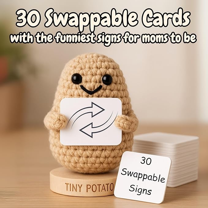 Funny Pregnancy Gifts for First Time Expecting Mothers - Handmade Crochet Potato Doll with 30 Funny Signs for Expecting Soon to Be Moms Pregnant Women - New Mom to be Gifts for 1st time Mom