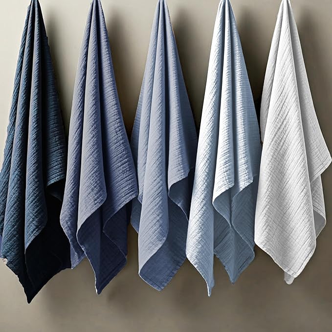 HonestBaby Multipack Woven Burp Cloths Soft Absorbent Multi-layered 100% Organic Cotton Infant Baby Boys, Girls, Unisex, Ombre Blues, One Size