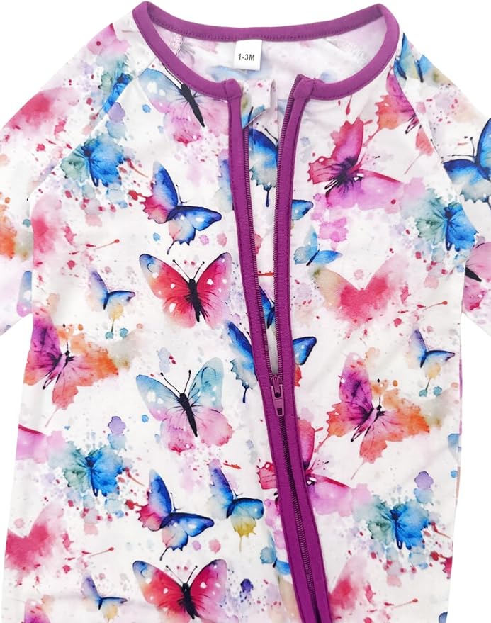 - Bamboo Rayon baby footie pajamas keeps baby's feet warm, and diaper gusset gives extra room for baby's diaper. newborn girl coming home outfit, 0-3 months, 3-6 months, 6-12 months ,12-18 months, 18-24 months .