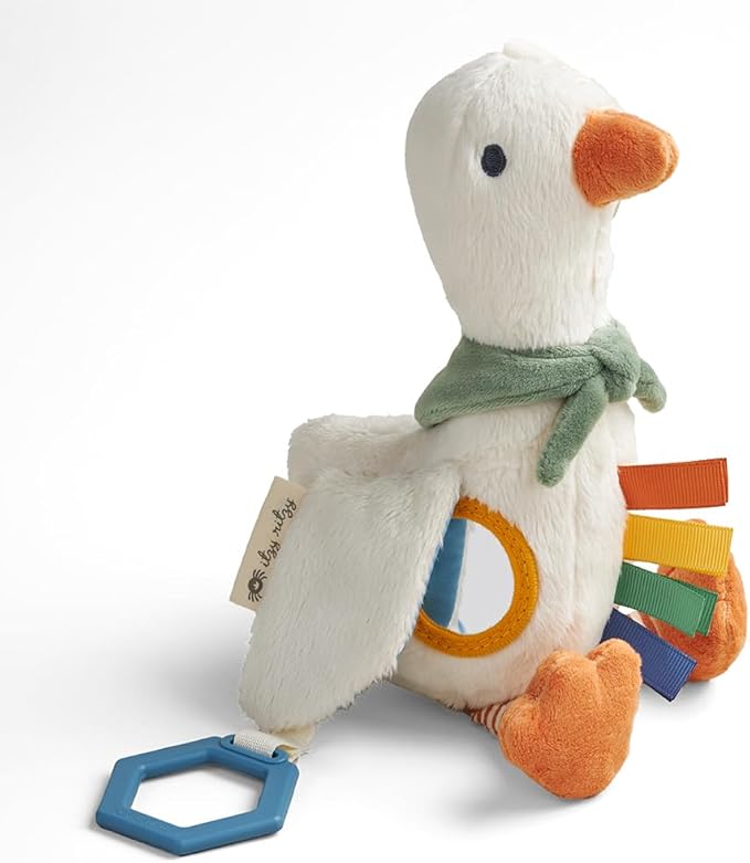 Itzy Ritzy Bitzy Traveler Car Seat & Stroller Toy for Babies – Developmental Sensory Toy Features Crinkle & Rattle Sounds & Multiple Textures – Hanging Travel Buddy for On-the-Go Entertainment (Goose)