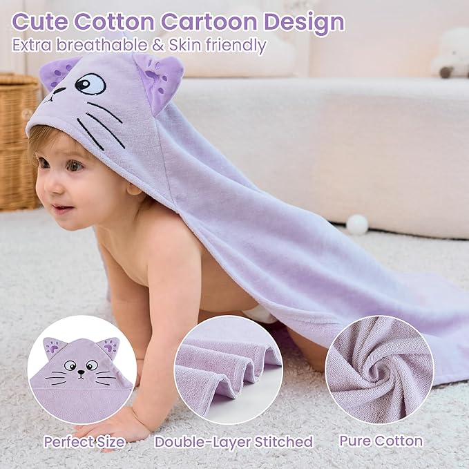 - PREMIUM MATERIAL: Our hooded toddler towels are made of 100% pure cotton material, very soft and thick, has extreme water absorption. Will not cause any harm to the toddlers' skin