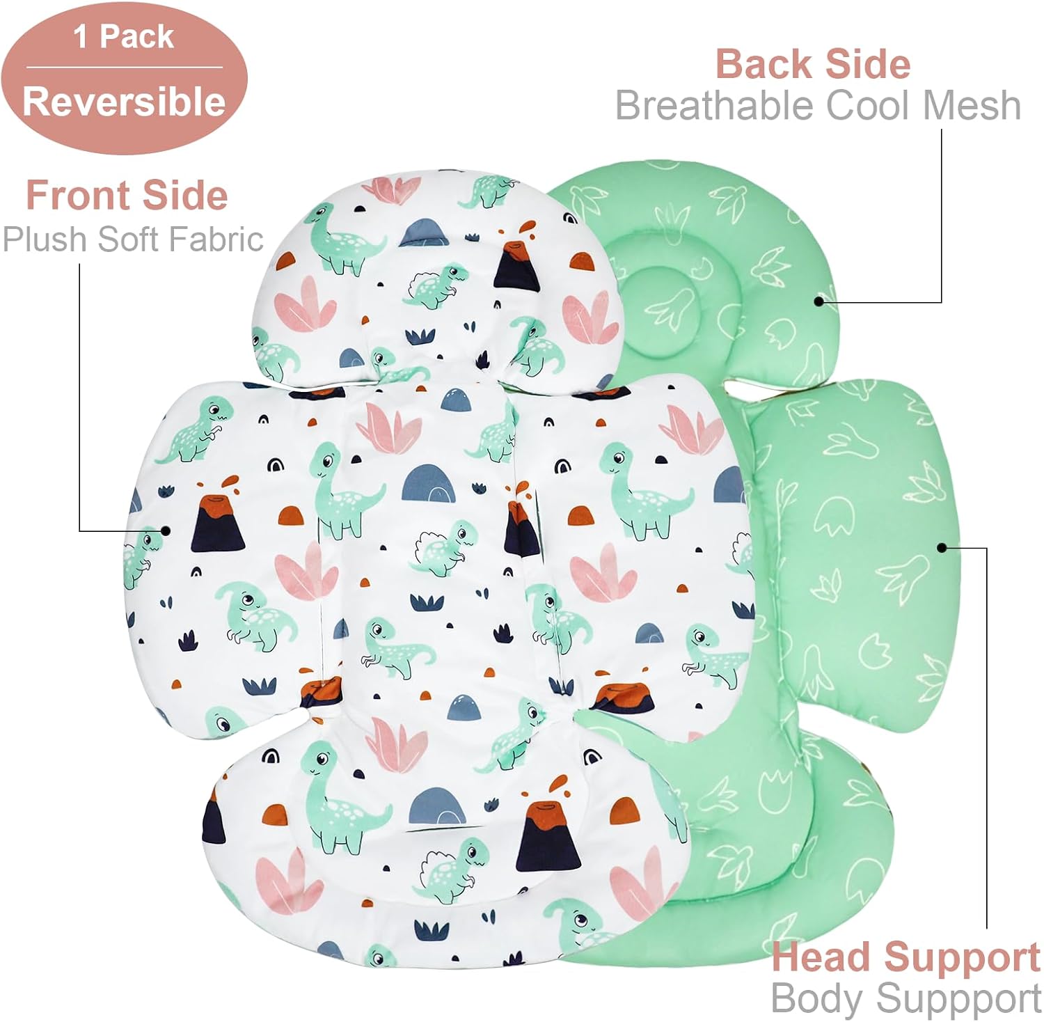 KAKIBLIN Infant Car Seat Insert, Baby Car Seat Cushion, Car Seat Head Support for Infant,Breathable Reversible Carseat Insert Support for Newborn Stroller, Baby Swing, Bassinets, Pushchair (Green)