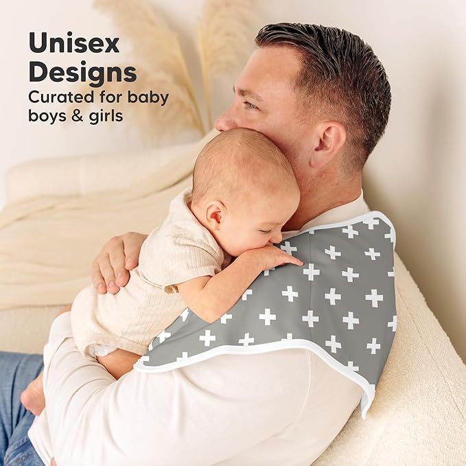 - Gender Neutral – Designed to blend with any outfit, our burp rags are suitable for both baby boy, baby girl. Get the sleek look and enjoy staying clean all day long with our baby bibs & burp cloths. One of the must-have baby essentials!