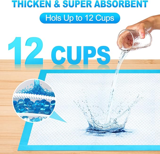 - Ultra-Absorbent 6-Layer Core Technology: Engineered with 6-layer super absorbent polymer, our dog pee pads instantly lock away liquids faster than other dog training pads, preventing leaks and keeping floor dry even for large-breed dogs