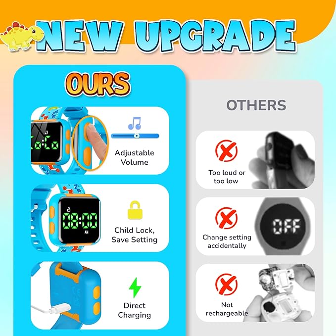 - IDEAL GIFT - 7 sets of cyclic countdown timers, 15/30/45/60/90 mins, 2, 3 hours, which not only supports potty training but also helps build good habits. Kids will love this adorable dinosaur watches. Packaged in a beatiful box, making it the ideal present rewards for toddler boys 18 months and up!
