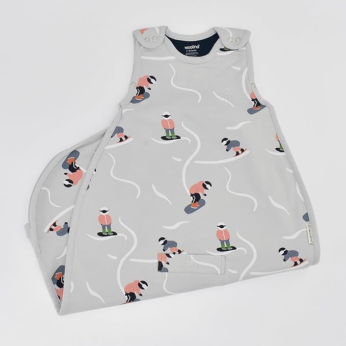 Woolino 4 Season Sleep Sack - Ultimate Merino Wool Sleeping Bag - Two-Way Zipper Adjustable Universal Size Sleep Sack for Baby (2-24 Months) - Snowboarder