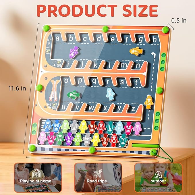- Educational and Interactive: The magnetic alphabet letter maze toy is a fun and engaging way for children to learn about letters; With its colorful design and magnetic letters; kids can enjoy hours of educational playtime