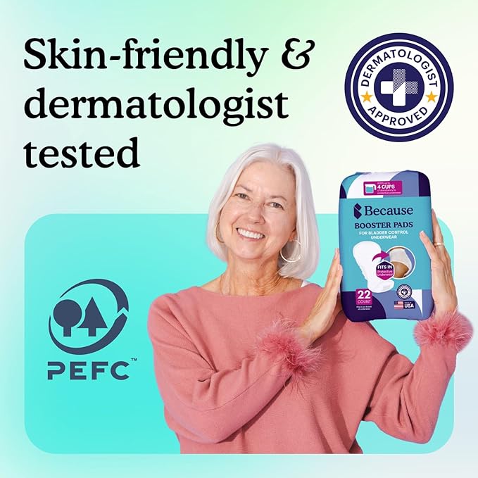 Because Premium Incontinence Booster Pads for Men and Women, Adds Extra Absorbency to Adult Diapers, Super Soft, Adhesive Strip Backing, Unisex, 22 Count