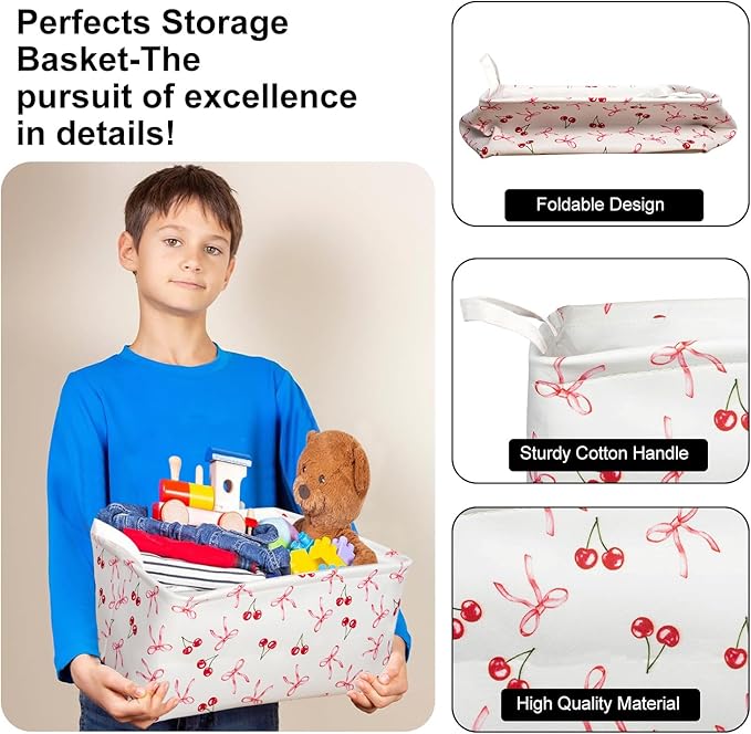 - 【DECORATE & ORGANIZE】 Merge functionality with artistry! Neutral exteriors seamlessly blend with any décor, while vibrant bow-themed prints inject playful character. Style and declutter kids’ rooms, living areas, or entryways effortlessly—each basket showcases a unique bow-inspired story.