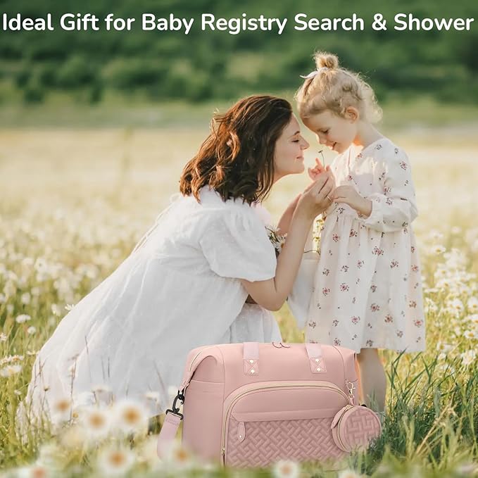 Diaper Bag Tote, Baby Bag Travel Diaper Tote Bag with Pacifier Case, Cute Maternity Hospital Baby Stylish Diaper Tote for Mom Dad Medium Size, Pink