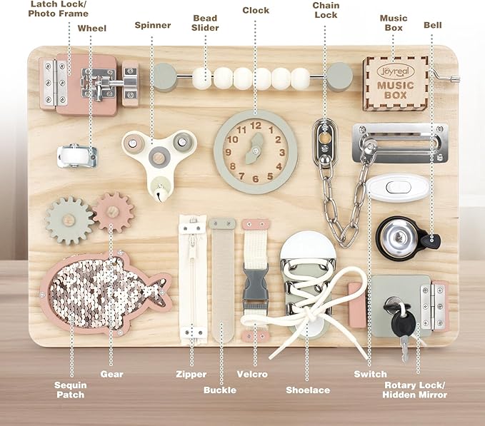 - [Perfect Toddler Gift Choice] An ideal educational gift for birthdays or holidays, this Montessori busy board engages little minds with different interactive parts. This is a great sensory toy for toddlers, including autistic or ADHD children.