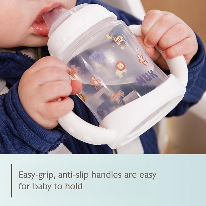 NUK Learner Cup, 6+ Months, Fun Fruits and Animals, Amazon Exclusive Collection, 5 Oz, Pack of 2 – BPA Free, Soft Spout, Spill Proof Sippy Cup