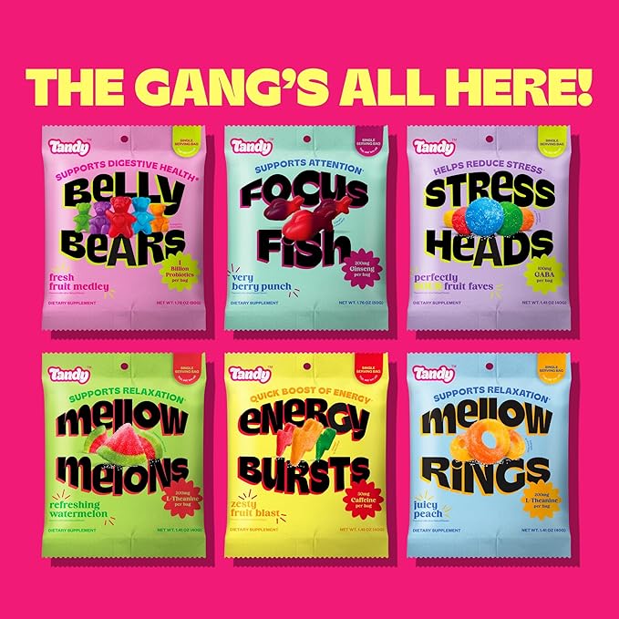 - TANDY FLAVOR SAMPLER. Dig into these single-serve bags of gummy supplements that not only taste delicious, but offer wellness benefits when you need them! We packed these puppies with the ingredients that give us the benefits we need without compromising taste.