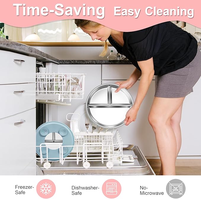 - Clean Taste with Safe Materials: Unlike all-silicone plates that sometimes leave a soapy taste, this food-grade, BPA-free and lead-free stainless steel plate won't hold the flavor of the dishwashing pod or liquid soap, keeping food tasting fresh
