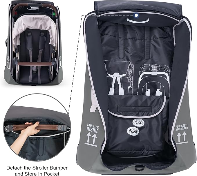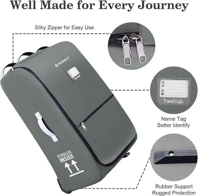 - Effortless Carrying Stroller Bag for Airplane: Our foldable travel bag is equipped with smooth wheels, multiple handles, and a front luggage tag pocket for quick identification, allowing for a seamless journey