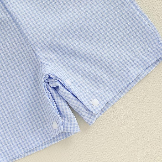 - Features: Baby boy tank romper, baby boy plaid romper, infant boy suspender romper, baby boy jumpsuit shoulder and crotch with snap design, easy to wear and take off, summer baby boy outfits