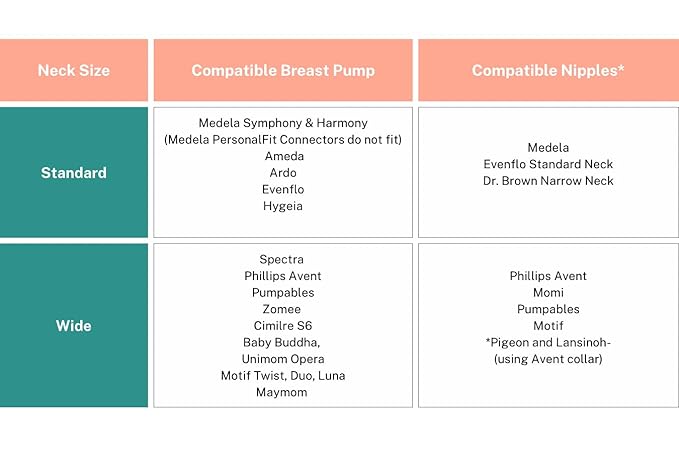 - COMPATIBILITY - Our wide-neck bottles fit Medela Symphony, Harmony, Pump-in-Style, Sonata, Ameda, Ardo, Hygeia, and Evenflo Advanced and Pocket pumps. They’re also compatible with Medela, Evenflo Wide Neck, Pigeon Wide Neck, and Dr. Brown Narrow Neck nipples, making them easy to use with the feeding accessories you already trust.