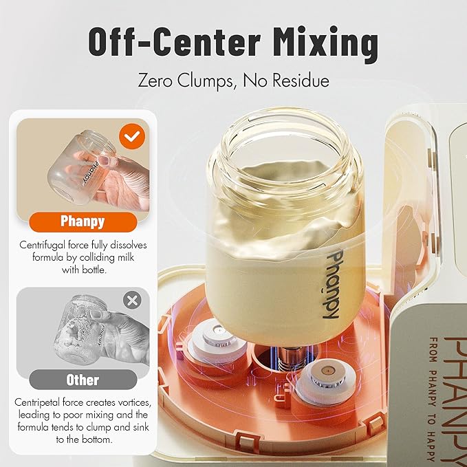 - 【Off-Center Mixing: Zero Clumps】- Our formula shaker uses high-speed centrifugal force to dissolve formula by colliding milk with bottle walls, zero clumps or residue – design for thick or organic formulas that clump easily.