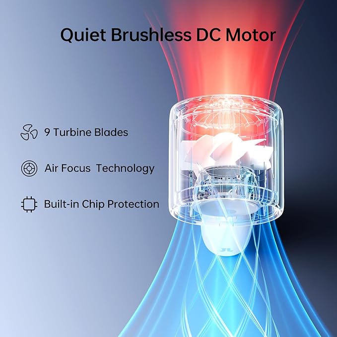 - Ultra-Quiet&9-Blade Design:With 9 ultra-quiet blades, this mini fan operates at a low noise level of 56-76 dB, ensuring a peaceful cooling experience.And the aerodynamic blades deliver strong, stable airflow for optimal comfort