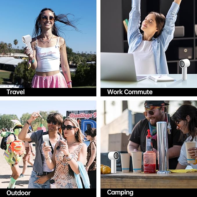 - 5 Cooling Wind Speeds:Take control of your comfort with 5 precise speed settings—from a soft whisper-quiet breeze to an instant high-powered cooling blast. This personal fan lets you personalize airflow whether you're working, commuting, or exploring outdoors