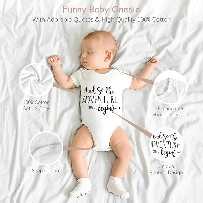 - 【7pcs Baby Gift Sets】Be prepared with the new baby announcement(Cotton Baby Essentials) - onesies, socks, bibs with fun quotes are custom made for baby shower to announce that the adventure has begun! Baby mittens prevent baby from scratching himself; the beanie hat and baby blanket keeps the baby warm, baby milestone record the growth of your baby. The complete baby gift sets comes in a neutral white color for a baby boy or girl, it's even easier as a gender reveal gifts!