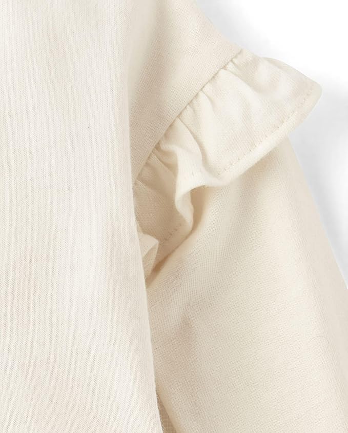 - FIT & DESIGN: Crew neck, long sleeves with flutter trim at drop shoulders