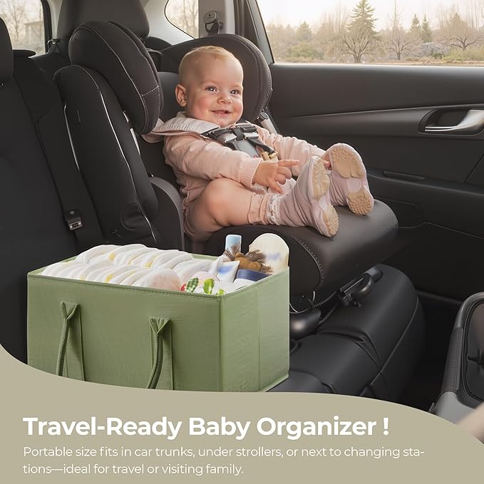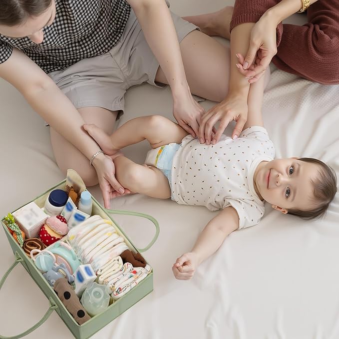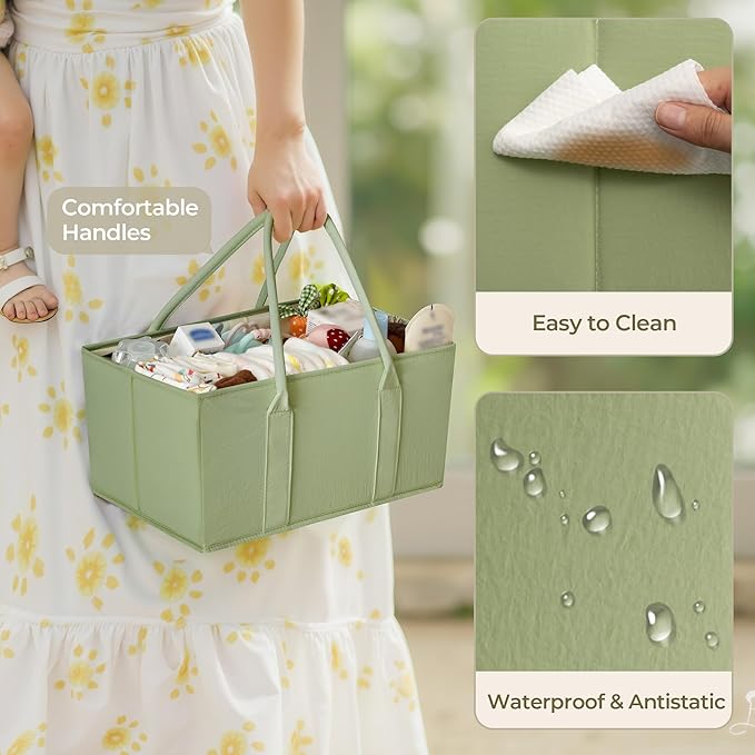 GRANNY SAYS Baby Diaper Caddy Organizer, Baby Bag for Diapers and Baby Wipes, Nurse Baskets for Changing Table, Car Organizer, Gift for Baby Shower, Newborn Essentials, Green