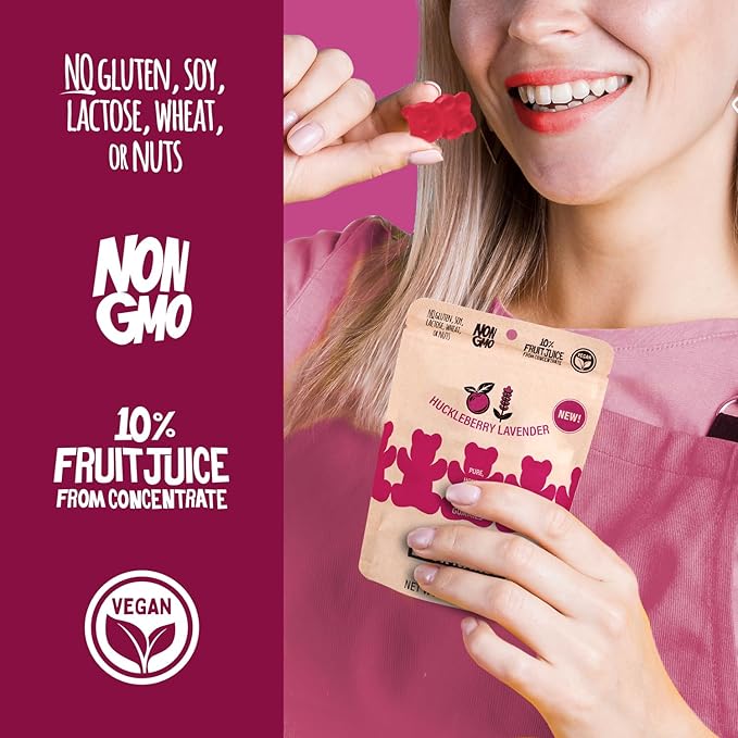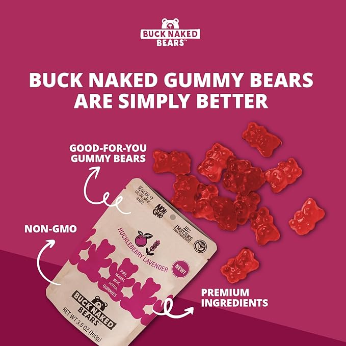 Buck Naked Bears - Huckleberry Lavender Gummy Bears - Soft, Smooth, and Sweeter Like a Fruit Snack - Plant-Based Gummies Good Snack Choice - Non-GMO - Clean Label Gummy Candy - Vegan 3.5oz 3-Pack