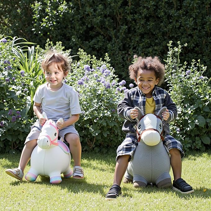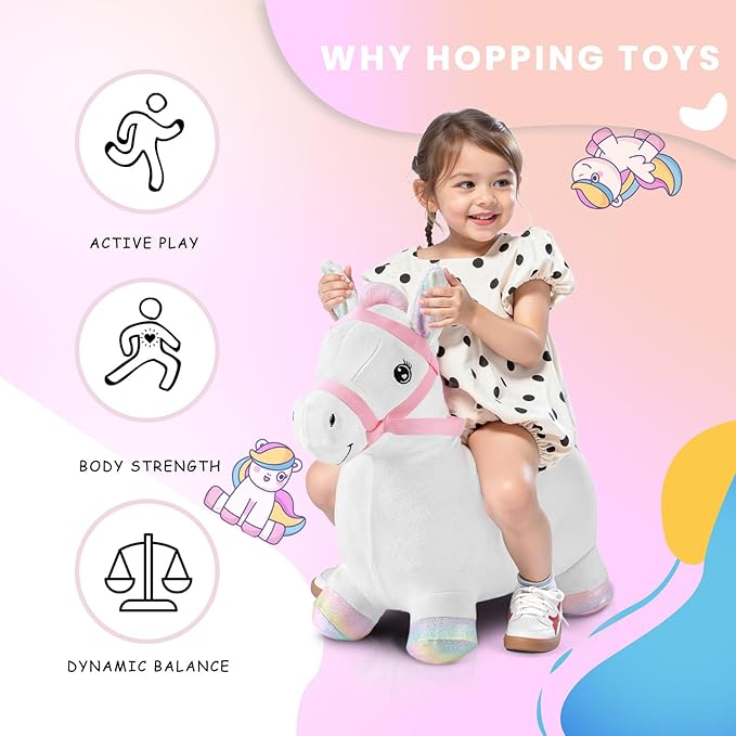 Hopper Toy 2 Year Old Boy, Toddler Plush Bounce Animals, Ride on Bouncing Plush Inflatable Horse, Outdoor Indoor Hopping Horse Bouncer, Birthday Gifts for 18m -5 Years Old Kid (White)