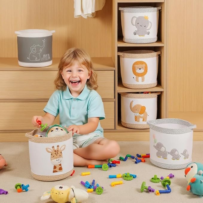 - Aesthetic Appeal & Unique Design: This 3 - piece woven baby laundry basket set features adorable animal designs of different elephants, crafted with plush - like embroidery, adding a cute and engaging touch for kids. The adorable animal designs hampers has soft textures and cute designs not only for a great decorative element for nurseries or kids' rooms, but also appeal to kids, making cleaning up a fun activity. Buy 3 pieces at once and place them separately in rooms where children often move, such as one for bedrooms, one for playrooms, and one for living room, to create a uniform and varied décor style