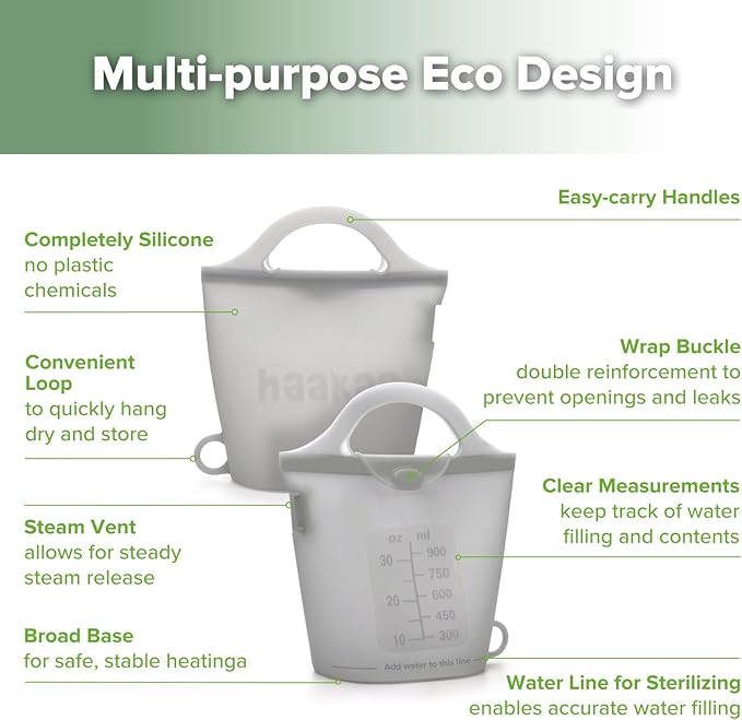 - REUSABLE PLASTIC ALTERNATIVE: Made from food-grade silicone, this microwave sterilizer bag is your reusable, plastic-free option. BPA-free and non-toxic, it delivers safe, durable, fast sterilization for small baby essentials.