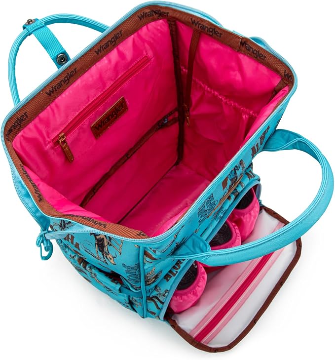- Balancing style with function, Wrangler southwestern diaper bag backpack for women.