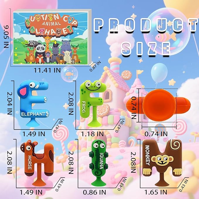 - 【Early Learning & Sensory Play】 Alphabet bath toys Perfect Montessori toys for building pre-reading skills through tactile play. 26 vibrant alphabet letters with adorable animal designs stimulate toddler's color recognition & letter learning. Each suction cup toy transforms into a 3D puzzle that sticks to windows, tubs, and tablets (ages 1+).